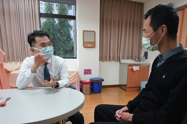 五十五歲的邱先生,四年前因一次衝浪活動遇到「瘋狗浪」撞上岩石,造成頸椎第五節嚴重損傷合併四肢癱瘓,接受頸椎減壓手術後固定後持續復健,雖然可以靠著手杖支撐走動,但因左腳明顯無力,且行走約二十分鐘就感覺體力耗盡,只能坐著或躺著休息。二○二○年五月間到花蓮探望親人,得知花蓮慈院推動中西醫復健合療,包括使用內生性幹細胞療法(G-CSF)、針灸、復健機器人等,已累積許多經驗,幫助腦傷、脊髓損傷的病人找到「能醒能走」的希望,便到了林欣榮院長的門診求治,先接受內生性幹細胞療法後,再轉介到了蔡昇宗主任的門診接受脊髓電刺激治療。