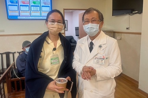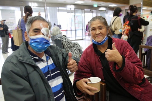 左圖:陪伴先生來辦理出院的陳小姐說,甜甜的很好吃,料很多!在這樣的天氣裡收到臘八粥很感恩也很開心,並許下新年心願,希望先生能健健康康,闔家平安。