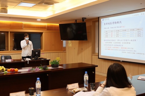 圖說:專案經理林韋晨,分享東區勞工健康服務中心 簡介及執行概況說明。