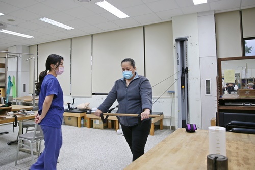 胡小姐去年10月來到花蓮慈濟醫院的職業傷病診治整合服務中心求診,由職業醫學科、復健部等跨團隊治療並擬定職能復健計畫,不只有職能復健,還規劃工作強化訓練,包含更換枕頭套、搬運箱子等,幫助她提升工作所需能力。