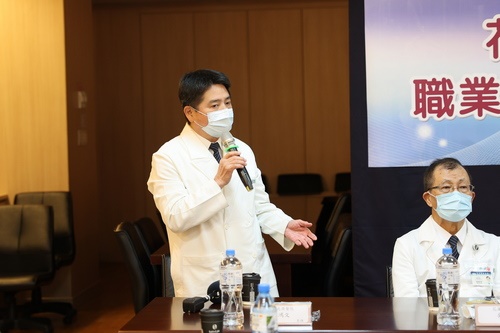 右圖:職業醫學科主任劉鴻文表示,東部勞工常見的職業病由花蓮慈院各科進行整合式的診治,同時也協助勞工申請各項補助,讓他可以安心地接受治療與復健,而後健康地回到職場