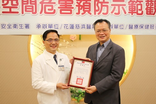 花蓮慈濟醫院職業安全衛生室承辦勞動部職業安全衛生署於二月一日上午舉辦之「局限空間危害預防示範觀摩會」,不僅有127名來自臺北、宜蘭、花蓮、臺東的事業單位共同參與會議,職安署署長鄒子廉也特別蒞臨現場視察。觀摩會上,由北區職業安全衛生中心張書銘科長與花蓮慈院職業醫學科林純吉醫師,分享局限空間作業的危害預防,和遇到缺氧危害時之緊急處理方式,並安排了水塔清洗作業實地示範,透過視訊方式,實境轉播給與會者;期望透過會議交流,提高預防意識、強化應變措施,避免在局限空間工作時,發生危害。