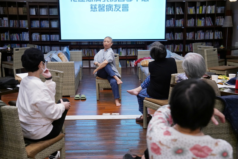 ▲臨床心理師廖胤凱以正念減壓為題,分享調整呼吸及正念減壓,帶領病友聆聽自己的身體。