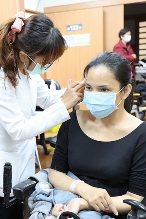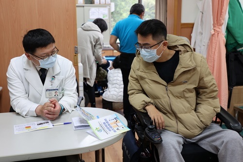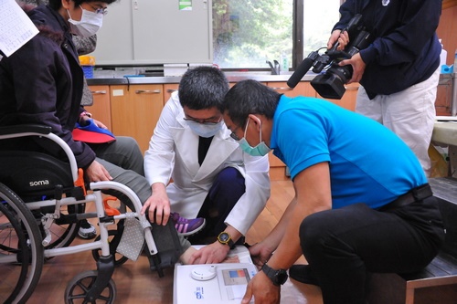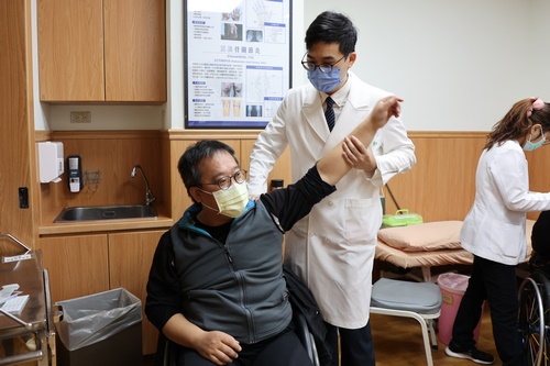 義診活動是由泌尿科、神經外科、骨科、復健科、中醫科、整形外科、牙科與護理部、藥學部團隊攜手照護脊損傷友健康。「我今天搭一早7點多的火車從臺東來!」正在接受中醫針灸治療的王先生,40多年前一場車禍讓他胸椎第12節受損,胸部以下癱瘓,王先生說,這是他第一次接受中醫治療,因為下半身無法動作,上下床、上廁所都要倚靠兩隻手來移動自己的身體,有時可能姿勢與出力方式不正確,讓他的兩臂、肩頸容易痠痛,沒想到這次義診透過中醫可以改善他的痠痛問題之外,還可以接著到其他科看診,真的很方便。