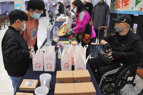 ▲門診大廳還有「脊客一級棒」小市集,展售傷友自製的餐點、藝術品。(左圖攝影/江家瑜、中圖攝影/廖文聰)