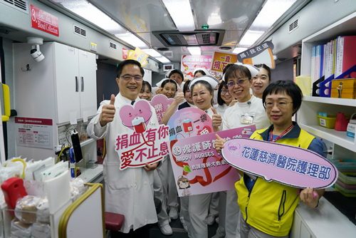 花蓮慈濟醫院五月十二日舉辦「國際護師節表揚大會」及「護理之光長廊」揭幕儀式。今年國際護師節主題是「Our Nurses. Our Future.(有護理師 才有未來)」,除了感恩全年無休而且二十四小時陪伴守護病人的護理同仁;護理部團隊加場捐血活動募愛心,邀院內同仁、鄉親一起挽袖捐血,慶祝護師節。