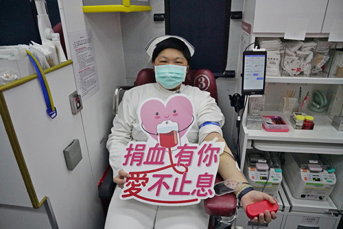 護理部督導戴佳惠,率先捐出500CC熱血。(陳炳宏攝)