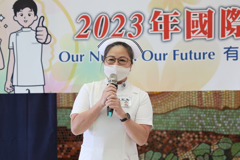 護理部主任鍾惠君指出,今年國際護師節主題是「Our Nurses. Our Future.(有護理師 才有未來)」,經過三年新冠疫情洗禮,感恩依然留在職場的同仁,表彰優秀護理師的「護理之光長廊」,有70%來自慈濟教育體系,從生手到熟手,發揮良能成為護理之光。在花蓮慈院,因為有懿德媽媽、爸爸照顧,疫情再忙再累都不覺得辛苦,反而有濃濃的幸福味,這是其他醫學中心感受不到的慈濟人文。