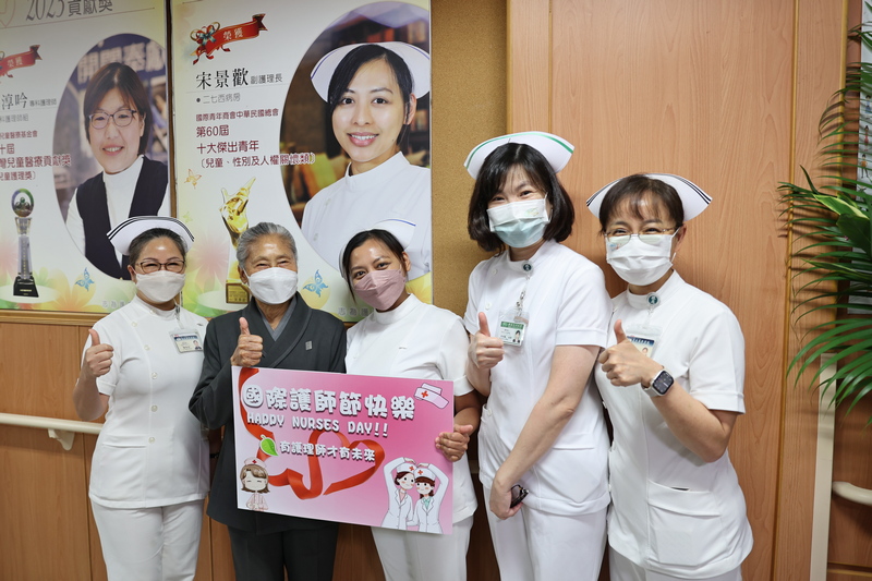 為紀念近代護理學和護理教育的創始人南丁格爾,全球護理界將五月十二日南丁格爾生日訂為國際護理師節(International Nurses Day)。在這個屬於護理師的節日,慈濟基金會副總執行長林靜憪、慈濟醫療法人執行長林俊龍、花蓮慈院院長林欣榮、副院長陳培榕、護理委員會主委章淑娟、慈濟大學護理系教授張美娟等人也到大廳,為護理部主管、臨床同仁,獻上誠摯的祝福。