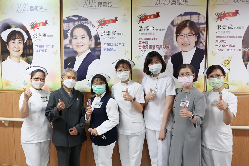 二七西病房護理長李依蓉、合心八護理長余佳倫、二九東護理長張素雯、中醫門診護理師張友薰,獲頒花蓮縣模範勞工、急診副護理長蕭琦諭獲花蓮縣優秀青年肯定,兒科病房副護理長宋景歡榮獲第六十屆十大傑出青年、專師劉淳吟獲瑞信基金會臺灣兒童醫療奉獻獎,器捐協調師施明蕙、周桂君獲得第十四屆優秀器官勸募人員,這都是花蓮慈院護理之光。