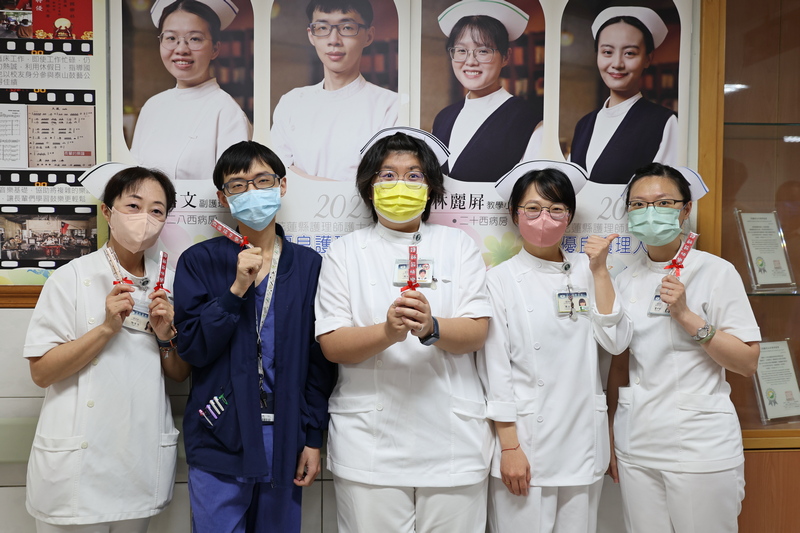 今年有115位護理師獲表揚,獲選「護理,為人生加分」的五位護理師,除了在臨床上發揮所長外,也樂與夥伴分享在生活上的其他專長。外科加護病房科護理師林怡岑,除了出版專科護理師執照考暨臨床實務參考書,輔導超過4000多名考生取得執照外,也積極的為弱勢、偏鄉兒勸募各種物資與聖誕禮物;合七病房護理師彭宣燕除平日喜歡製作甜點分享外,喜歡學習新事物的她,還持續在長照研究所精進;二五東病房副護理長洪萬康,除揪團爬山外,還在樂趣中探詢研究題目,包括學習實證護理、急性高山症介入措施、中醫護理等;神經外科專科護理師黃湘玲,工作之餘,也培訓成為慈濟委員,並參加慈濟周年慶朝山、義診、馳援土敘地震,還培養彈琴、拼布、油畫等藝術技能;合心六樓護理師邱佃,在護理專業之外,也培養國樂興趣,輔導樂齡大學擊鼓社,用音樂關懷社會。