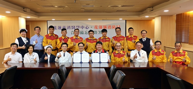 合作備忘錄儀式由花蓮慈院院長林欣榮、花蓮縣消防局局長吳兆遠代表簽署,並有副院長陳培榕、急診部主任陳坤詮、藥學部主任劉采艷、護理部主任鍾惠君、骨科醫師暨花蓮縣義勇消防總隊副總隊長兼救護義消大隊大隊長吳坤佶、總務室保管組組長曾能奎、企劃室高專唐昌澤、護理部督導周英芳,以及特種搜救大隊大隊長簡弘丞、醫療組組長溫宗豪、搜救二組組長莊青山等團隊蒞臨見證。