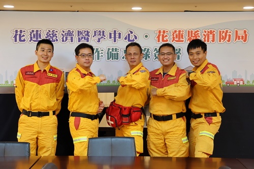 為了提升救災醫療量能,花蓮慈濟醫院在5月25日上午,與花蓮縣消防局簽立合作備忘錄(MOU),未來若特種搜救隊趕赴救災現場,消防局可先到花蓮慈院領取藥物、醫材及器械,在災害現場的第一時間即時給予傷者醫療處置外,同時在搜救隊出勤期間,成員發生傷病時,也可以得到立即的診療。