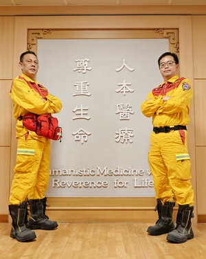 ▲花蓮慈院急診部緊急暨災難醫學科主任徐子恒(右)、護理部副護理長凃炳旭(左),在花蓮縣消防局特搜隊擔任醫療組成員。