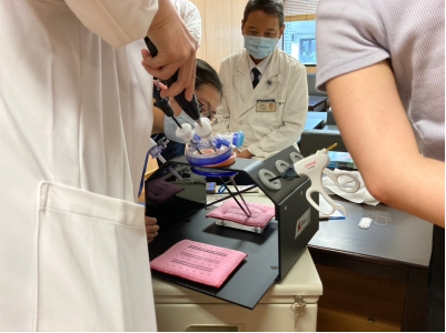 ▲花蓮慈院婦科微創手術中心舉辦單孔微創縫合比賽,參賽的醫師要透過單一孔洞,在十分鐘內要完成包含正結、反結、正結組成的打結組。