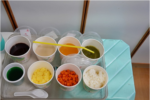為了精準作檢查與治療,花蓮慈院營養科根據國際吞嚥障礙飲食標準 ,調製出質地由軟至硬0-7級的「吞嚥檢查餐」,例如白開水就是0級食物,7級就是質地像白飯的固體食物,紅蘿蔔泥是6級、炒蛋是5級、果凍是4級……,葉映廷說,透過不同質地、顏色食物輔助影像檢查,各種病人都可找出食物殘留或掉到氣管原因加以改善。