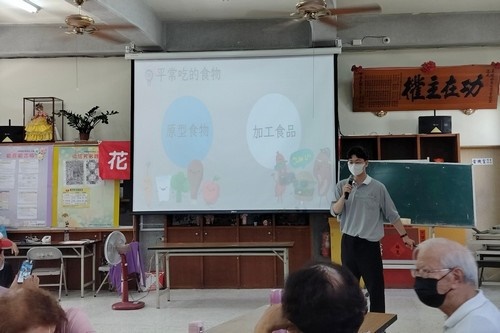 ▲高齡暨社醫部行政組洪從善組長,為社區長者帶來專業知識和實踐經驗,向長輩介紹正確的飲食、運動方式以及相關的醫療健康風險。(攝影/李明諺)