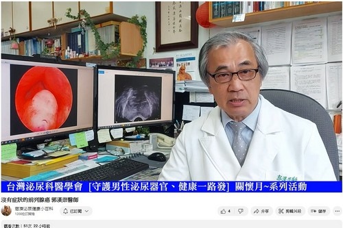 ▲花蓮慈濟醫院泌尿部的臉書社團「慈濟泌尿科健康講座」響應「守護男性泌尿系統健康」關懷月活動,首支由郭漢崇教授錄製的「沒有症狀的前列腺癌」影片,已在8月2日上架,在YouTube「慈濟泌尿健康小百科」頻道也看得到。