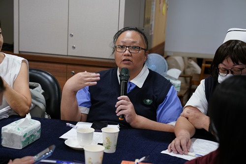 ▲心蓮病房安寧居家護理師陳純純表示,目前只要機構遇到新問題,心蓮病房安寧團隊就會規劃衛教課程,依照各機構需求開課,而且住民往生,也會安排心理醫師、宗教師輔導課程。