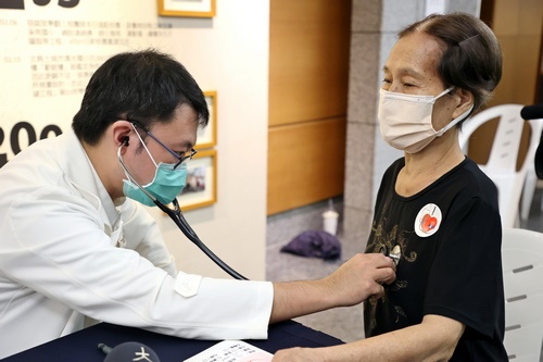 ▲心臟內科王惠生醫師為民眾「聽心音,找心病」。