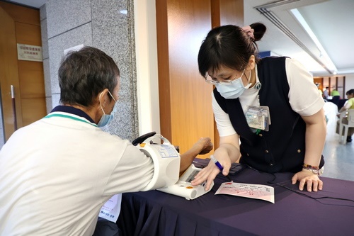 ▲個管師協助民眾量測血壓。
