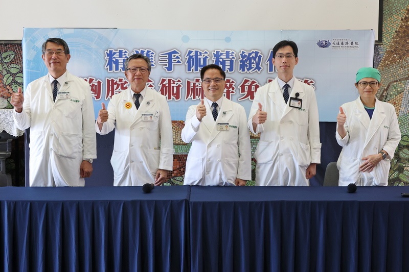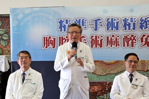 林欣榮院長感恩醫療團隊的努力,以先進的器材設備加上專業的人才與技術,使胸腔手術做得又快又準,不僅是追求精準醫療,更為病人的舒適著想,積極跨團隊合作提升醫療服務品質。徐中平副院長表示,如今醫療已來到ERAS(術後加速康復)時代,花蓮慈院以麻醉不插管進行胸腔手術即運用ERAS的概念,期望能推廣應用到更多術式上,在提升手術安全性的同時,也為病人創造更好的結果。