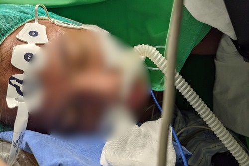 ▲花蓮慈院麻醉科與胸腔外科醫師合作,配合額貼麻醉深度監測、疼痛監測,使用標靶輸注全靜脈麻醉,並讓病人在鼻子戴高流量氧氣導管和二氧化碳監測。