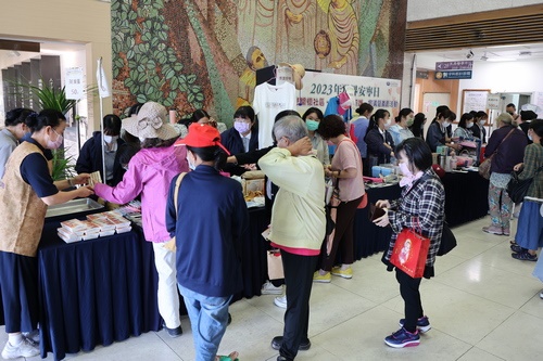 在佛陀問病圖前,擠滿了尋寶的人潮,慈濟大學護理系選修安寧療護課程的學生,把握機會向病人與家屬,以及同仁介紹心蓮旅行社,朱育亭說,她發現每個人都很有愛心來支持這個活動,讓心蓮病房的病人有更多機會可以完成心願,讓她很感動。
