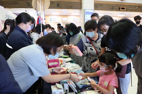 ▲花蓮慈濟醫院響應世界安寧日,12日上午在醫院大廳舉辦民眾宣導與義賣活動,為心蓮病房(安寧病房)的心蓮旅行社募心募愛,募集基金幫助末期病人圓滿最後心願。