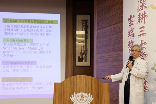 ▲花蓮慈院緩和醫學中心主任王英偉教授也在12日早上全院學術演講分享「全人關懷社區,高年友善、失智友善、慈悲關懷」,並表示,希望能將慈悲關懷的溫度帶給每一個人。