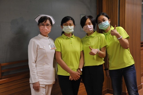 護理部開辦個案管理師進階教育訓練,葉秀真副主任(左一)感恩個管師宋美惠(左二)、李依甄(右一)、醫事室專員楊陵湘承擔工作人員。(廖文聰攝)