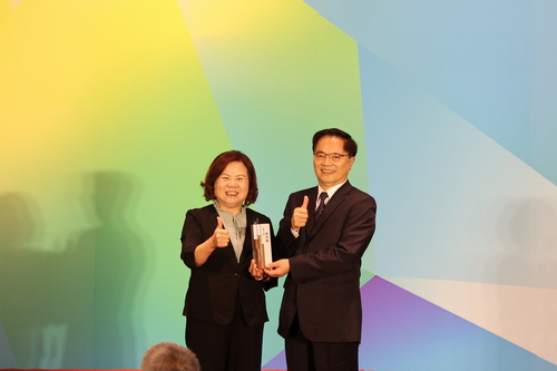 圖說:花蓮慈濟醫院林欣榮院長,獲得勞動部「2023促進中高齡者及高齡者就業暨世代合作績優獎」的績優人員獎殊榮,由勞動部部長許銘春(左圖左),頒發獎項 。