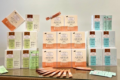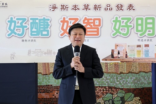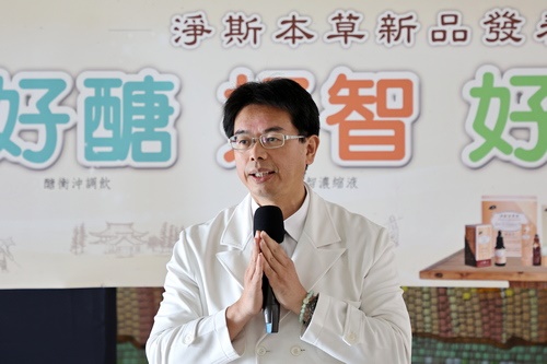 左圖:花蓮慈濟醫院最新研發的本草系列飲品,淨斯本草活芯智濃縮飲、淨斯本草明適沖調飲、淨斯本草醣衡沖調飲。(攝影/劉明繐)