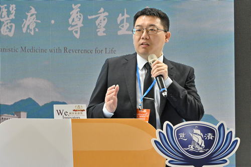 右圖:裕隆汽車生產技術部經理彭百君分享,跨界與花蓮慈院攜手開發智慧藥箱,充分落實裕隆「取之社會,用之社會」的核心精神。(黃銘村攝)