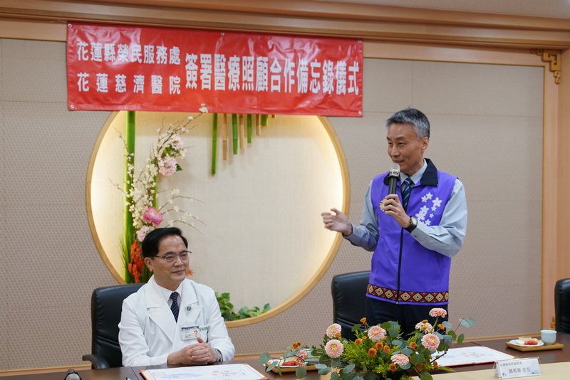 感謝退除役官兵付出人生守護家園,花蓮慈濟醫院承擔起守護健康的責任,十二月五日上午,花蓮慈濟醫院與花蓮縣榮民服務處簽訂《促進退除役官兵醫療照顧合作備忘錄》,由花蓮慈院院長林欣榮與花蓮縣榮服處處長蕭振嘉代表簽屬,要提供退除役官兵優質的健康照護,一起健康到老。