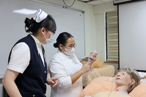 右圖:護理部督導戴佳惠表示,這是全臺第一批取得臺灣副學士以上學位的僑外生中階技術人力,六人在學期間都已通過華語檢定門檻,且完成擔任護理佐理員所需的訓練。