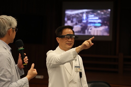 圖:10月初在骨髓幹細胞中心30周年啟動的元宇宙「AR智能解說員」,也將到搬到醫療科技展,歡迎民眾來體驗。(鍾懷諠攝)