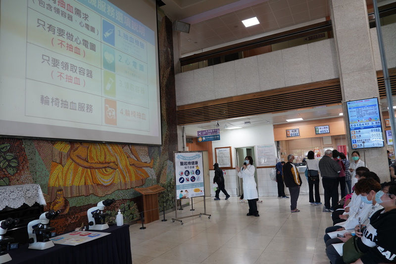 副院長吳彬安在活動開場提醒鄉親近日天氣冷、溫差大,要做好保暖。他也指出,醫院除了醫師、護理師、藥師外,還有很多幕後英雄,醫檢師不僅負責抽血、驗尿、做心電圖、病菌檢驗,在過去三年新冠肺炎疫情期間,還承擔抗原快篩、PCR核酸病毒檢測等業務,近期廣受重視的肺炎黴漿菌感染,醫師的診斷都要經過醫檢師把關,。
