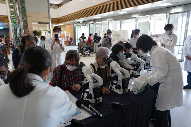 活動最後,由莊尚芫醫檢師主持有獎問答,讓民眾對檢驗醫學科多一分認識;同時還有顯微鏡實際操作體驗,利用顯微鏡觀察細菌、血球以及尿沉渣。