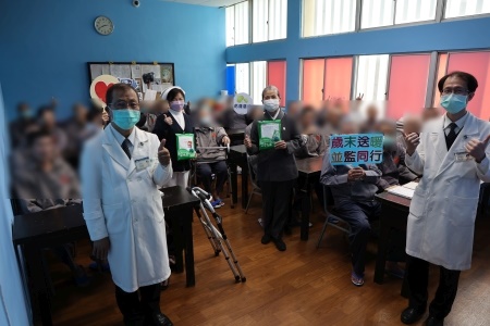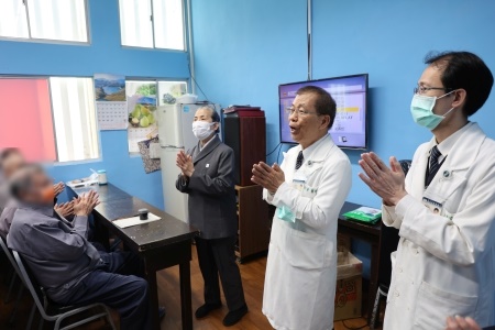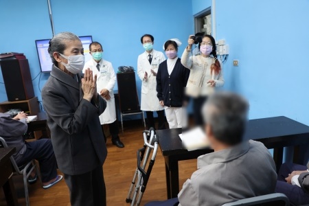 圖:花蓮慈院吳彬安副院長帶領醫護志工團隊,為花蓮監獄的同學送上保暖物資,並帶動大合唱《普天三無》、《感恩的心》。