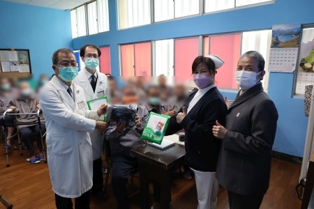 圖:花蓮慈院吳彬安副院長帶領團隊為花監同學送上保暖衣物。