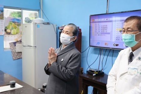 寒流來襲,除了在醫院裡守護民眾健康,花蓮慈濟醫院愛心送暖的腳步不停歇。在花蓮慈院志工室主任顏惠美(靜曦)師姊的牽線下,花蓮慈院吳彬安副院長帶領醫護團隊來到花蓮監獄,為花監內的同學們帶來保暖的衛生衣褲與襪子。吳彬安副院長表示,這些物資都是花蓮慈院全院同仁的愛心與祝福,希望能陪伴花監的同學平安過冬。
