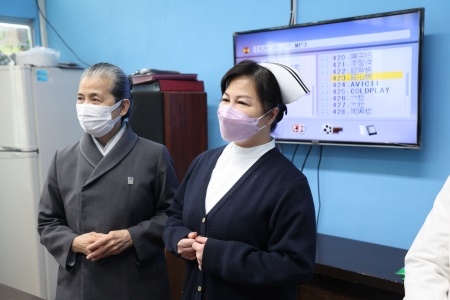 平常有在參加合唱團的吳彬安副院長,最後與花蓮慈院護理部主任鍾惠君,帶動花監同學一起大合唱,《普天三無》與《感恩的心》,吳彬安副院長表示,證嚴法師以普天三無跟大家分享,普天下沒有我不愛的人,沒有我不原諒的人,沒有我不信任的人,現在用這首歌跟花監的同學們分享,約定要一起用感恩的心來回饋社會。
