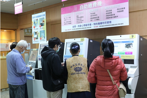 醫事室門診組股長張家琪表示,新型門診自助繳費機未來預計再增加行動支付、復健同一療程繳費、虛擬健保卡取卡、收據列印選擇等服務,讓民眾能省下等候批價時間,也能提升就醫品質。