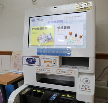 花蓮慈院引進的新型門診自助繳費機在1月18日正式上線,加上原有的門診自助繳費機全院一共有12臺同時服務,新增添的4臺繳費機,3臺設在大愛一樓中藥局旁、1臺於感恩一樓復健科門診,可同時使用現金及信用卡支付,並提供多科看診同時繳費功能。