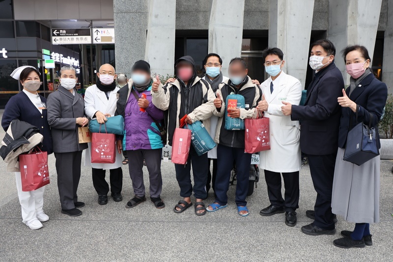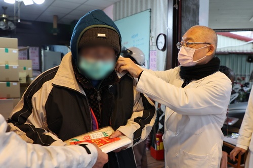 林欣榮院長說,醫院同仁不僅在醫療照護上發揮自己的專業,更身體力行,做到慈悲利他的精神,一起來幫助寒士,很感恩他們的愛心,也祝福寒士們能帶著這些物資與證嚴法師的祝福,平安度過寒冬,有一個溫暖的好年。