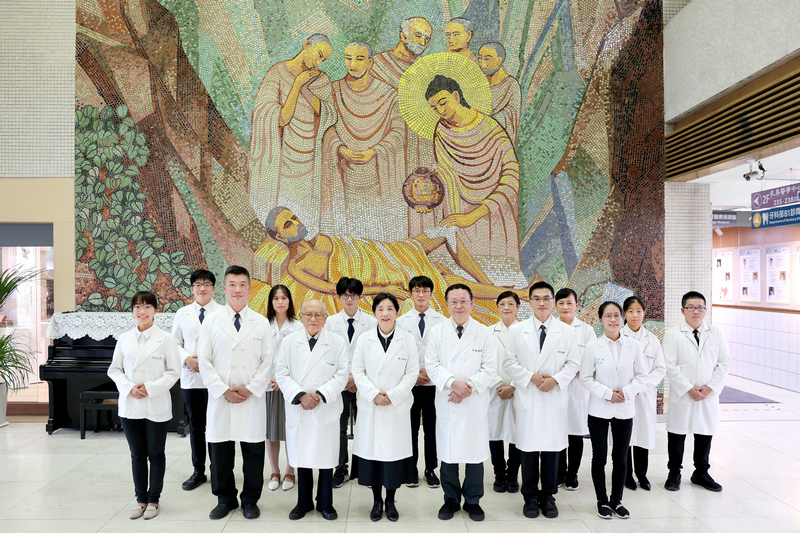 左圖:花蓮慈濟醫學中心皮膚部陣容堅強,以皮膚醫學專業守護東臺灣。皮膚部主任張中興教授(前排左四)、 皮膚一般科暨免疫感染科主任林子凱(前排左二)、皮膚外科暨美容醫學科主任洪崧壬(前排右二)、方甘棠教授(前排左三)、許漢銘教授(前排右三)與團隊合影。(攝影:陳安俞)