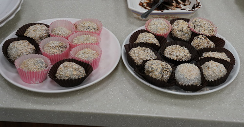 左圖:「燕麥棗泥元宵DIY」長輩們完成的的作品。