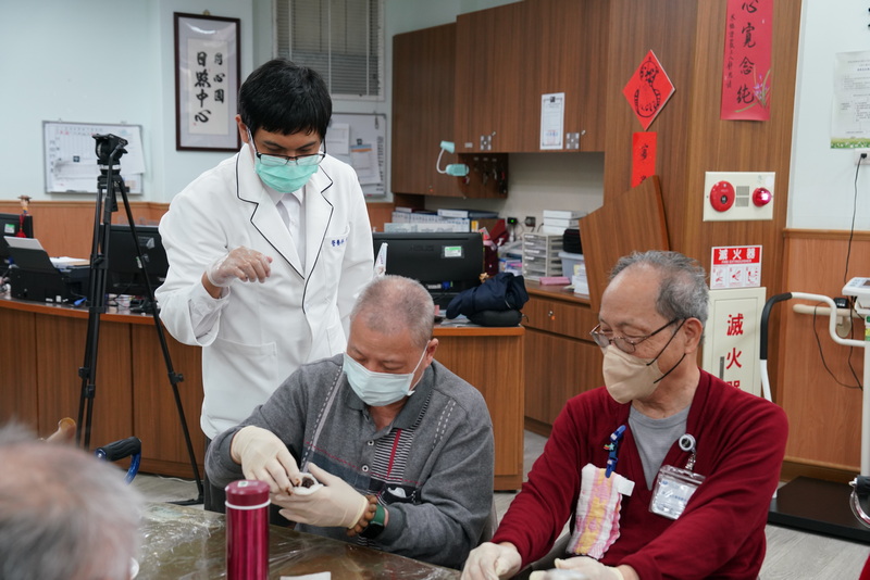 左圖:花蓮慈院日間照顧整合中心主任張幸齡(右一),細心指導長輩做元宵。