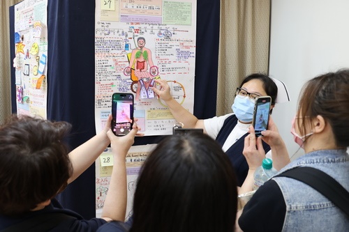 研討會外,也有超過百篇的論文海報投稿,以及護理人員的人形圖展示,以病人的故事,帶入病人照護,設計「個別性的全人照護」,活潑、有創意的圖解讓學員及講師紛紛駐足欣賞,並寫下回饋小卡,鼓勵護理人員對病人的用心。